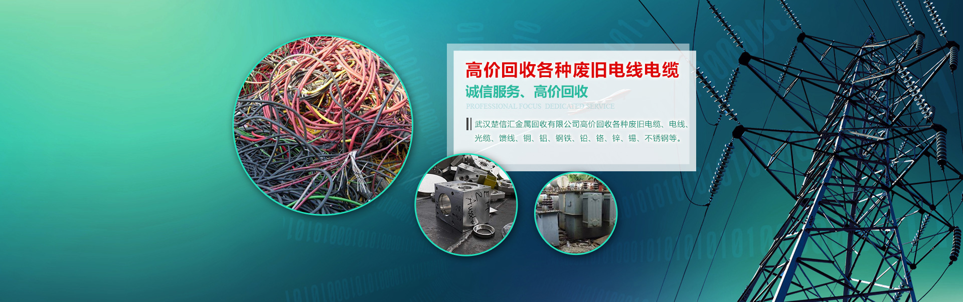 武漢楚信匯金屬回收有限公司高價回收各種廢舊電纜、電線、光纜、饋線、銅、鋁、鋼鐵、鉛、鉻、鋅、錫、不銹鋼等。   1、承接大型樓房、酒店拆遷工程,廠房搬遷及搬遷前的廢舊拆除工程   2、長期回收各類空調,酒店不銹鋼廚房設備,舞廳音響設備,企事業單位的機電、機床設備,庫存積壓產品以及 各種清倉報廢物資。   3、各種管件、電纜、電機、電瓶、電動工具。   4、報紙、書本以及成品或半成品廢料。   我們出價合理:廢舊金屬行情經常變化,價格時升時降,我們把握實時的市場行情,給您提供新的價格信息。以合理的價格,變廢為寶!一個電話便可為您提供回收,拆除清場,一條龍的優質服務!‘免費上門看貨,免費評估’ 聯系電話:13971365360 林先生 QQ:934406246   本公司專業從事庫存積壓處理物資的買賣,廢舊物資的回收,機電設備,五金電料,日用百貨,服裝布料,廠礦車間的所有機械設備 的回收,以及破銅爛鐵等金屬物品的回收。總之,從事所有有價值物品的收購和處理。常年高價上門收購:電腦,電視,冰箱,冰柜,家具,交通工具(如自行車,電動車,摩托車等),酒店餐館設施,餐具和灶具等。價格肯定 高于小商販的價格。